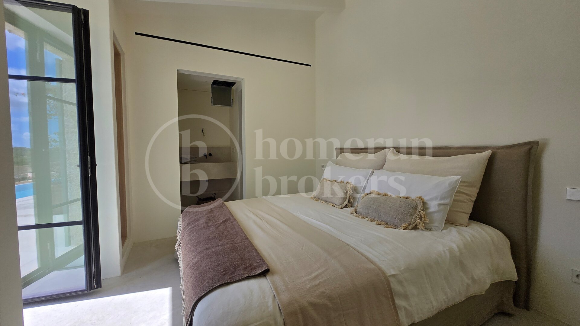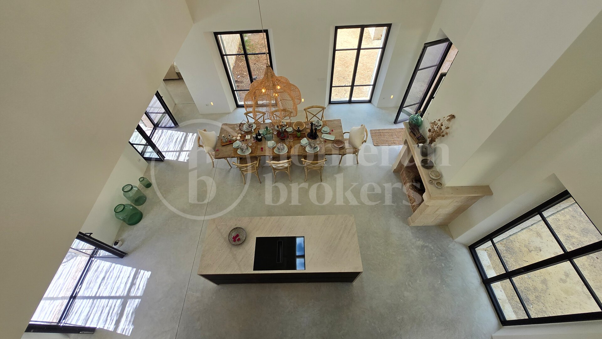 Finca La Perle is a newly built finca designed in the distinctive architectural style of Bastidas, offering a harmonious blend of modern innovation and timeless elegance. Set within its own vineyard, this exceptional home provides not only a tranquil and private environment but also breathtaking panoramic views of the surrounding landscape. The residence is designed to be entirely self-sufficient, featuring solar energy and a private well, ensuring sustainability without compromising on comfort or luxury.