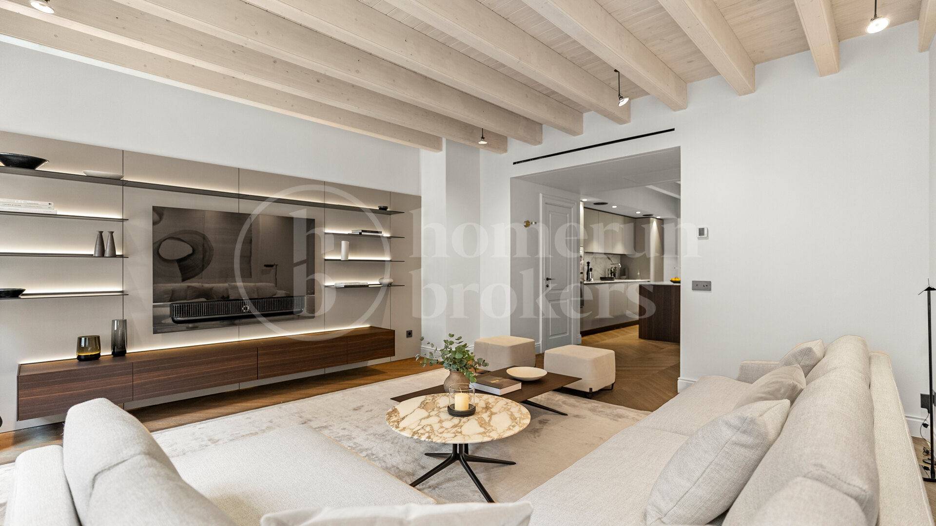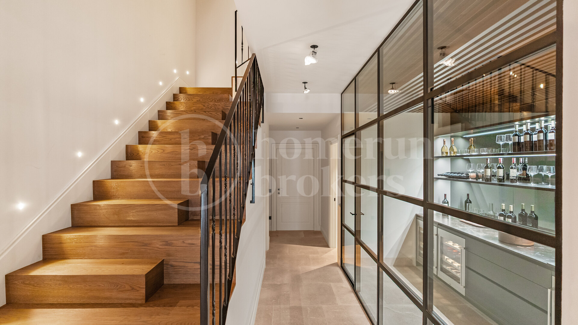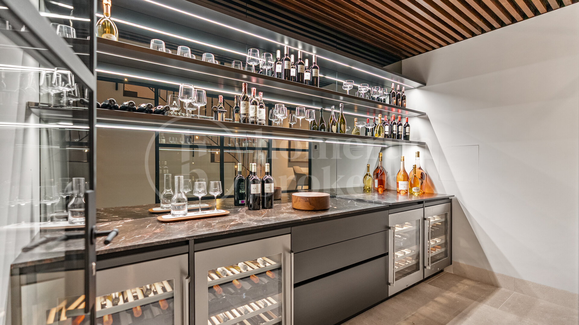 Lifestyle amenities have been thoughtfully integrated. A heated rooftop pool allows year-round swimming, while the outdoor kitchen and dedicated wine cellar elevate the home’s entertaining potential. Inside, premium brands such as Poliform and Gaggenau have been chosen for their combination of performance and design. Parking for one to two vehicles, an elevator connecting all floors, and advanced security features ensure convenience and peace of mind.