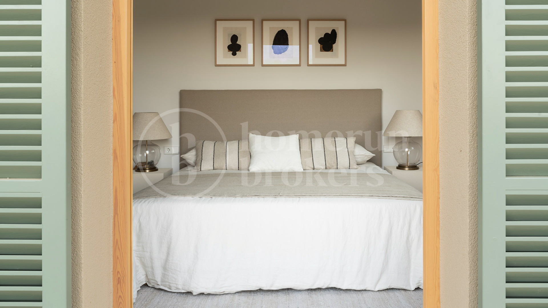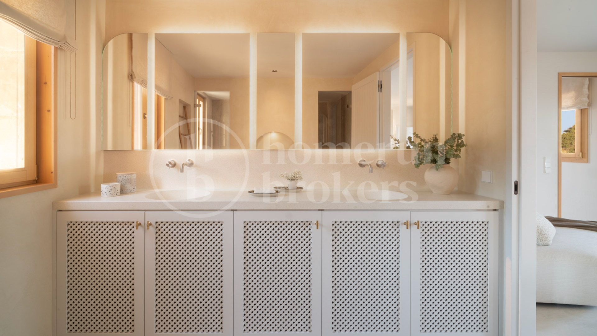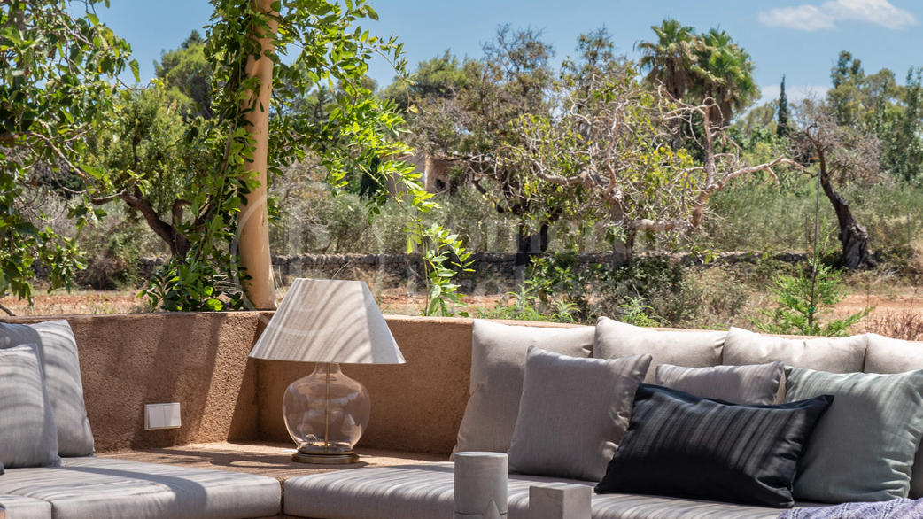 The upper floor is dedicated to an impressive master suite, complete with a dressing room, en-suite bathroom and a generous private terrace overlooking the surrounding countryside and the distant Tramuntana mountains. A further room on this level offers flexibility as an occasional fifth bedroom, study or children’s room.