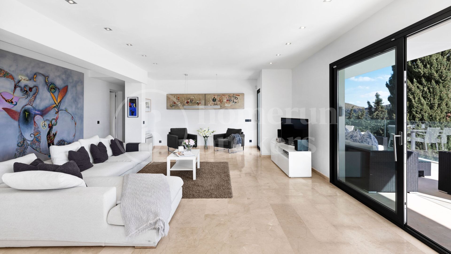 Outside, the setting is private without feeling enclosed. The glass-fronted balcony offers the perfect space to dine or enjoy a drink as the sun rises or sets. A shaded garden area next to the kitchen is the perfect small place space for children or for the more culinary, a BBQ area. The private heated swimming pool is accessed via a gentle ramp, still affording spectacular views as you laze and bathe the day away.