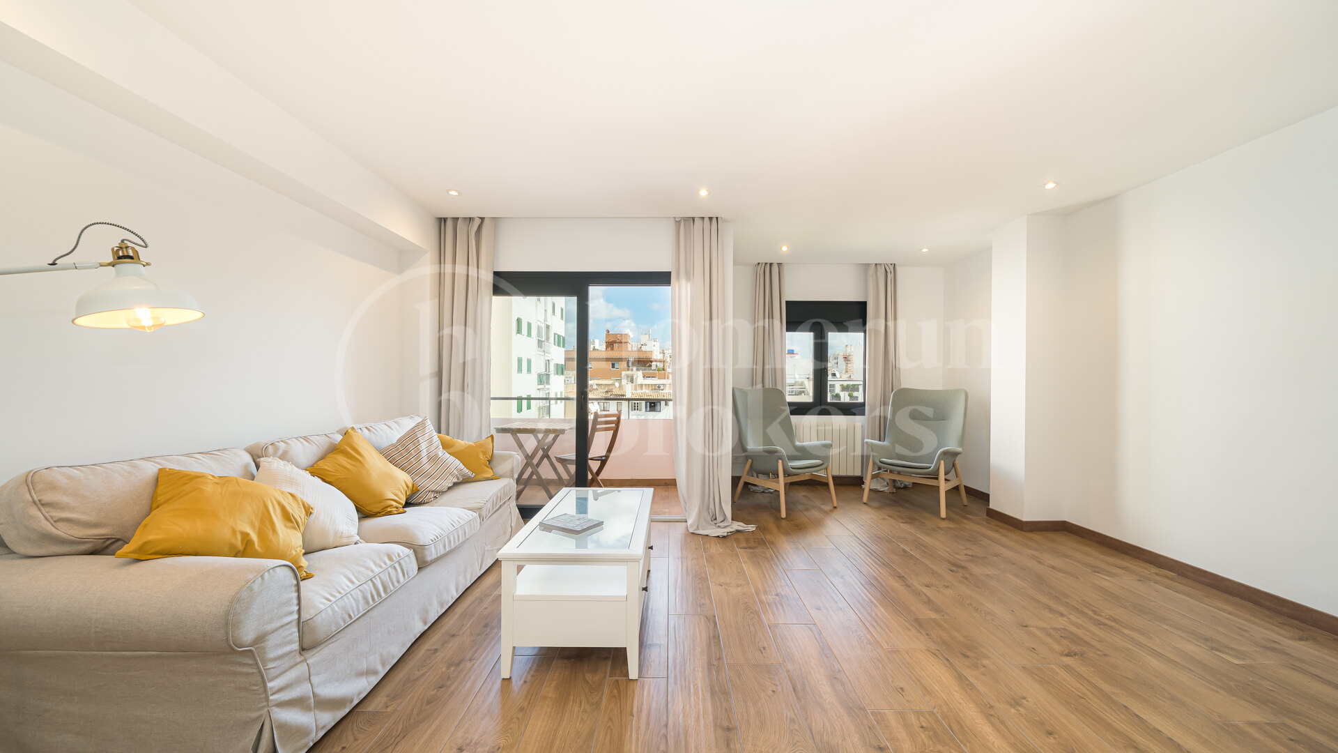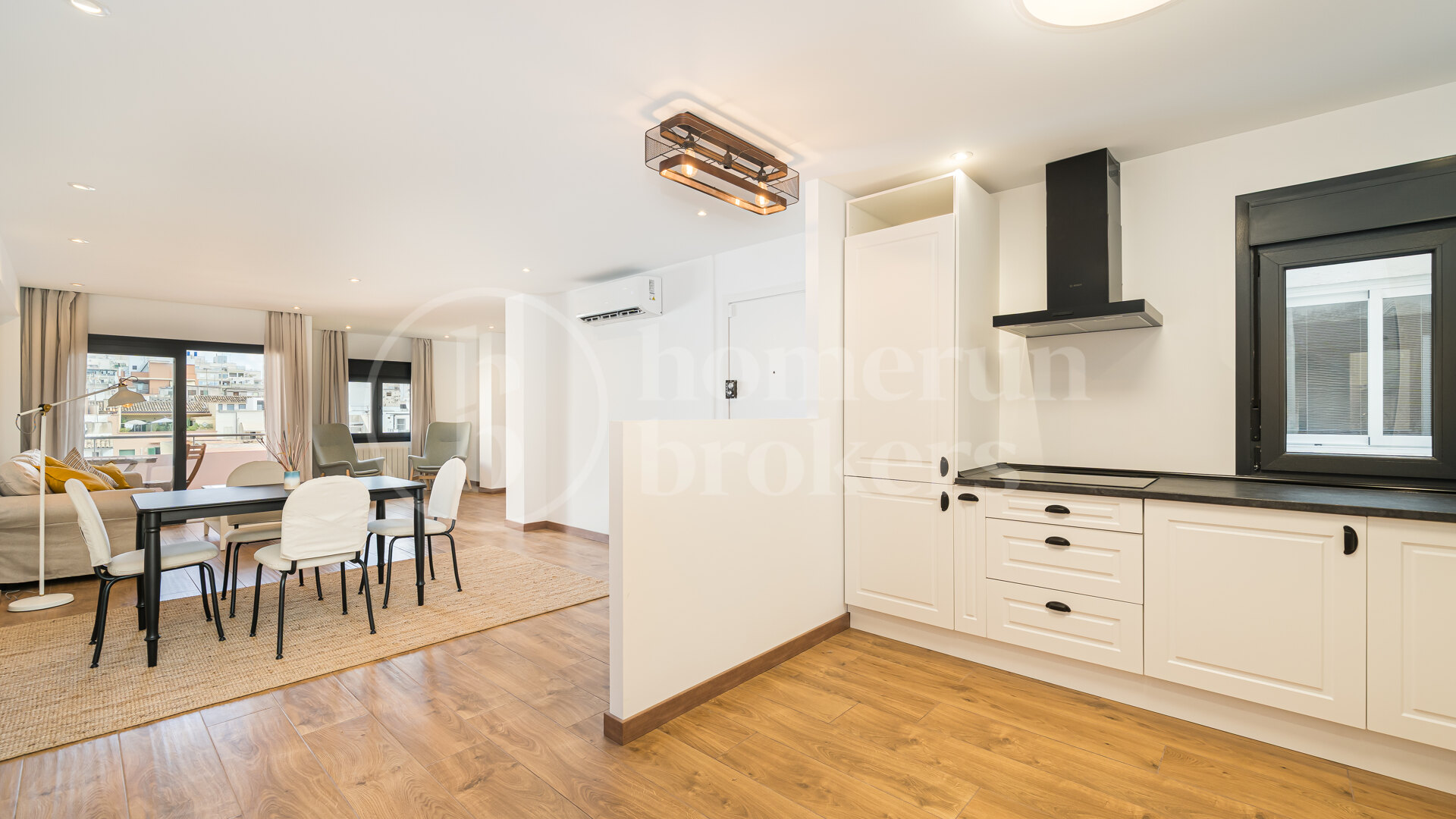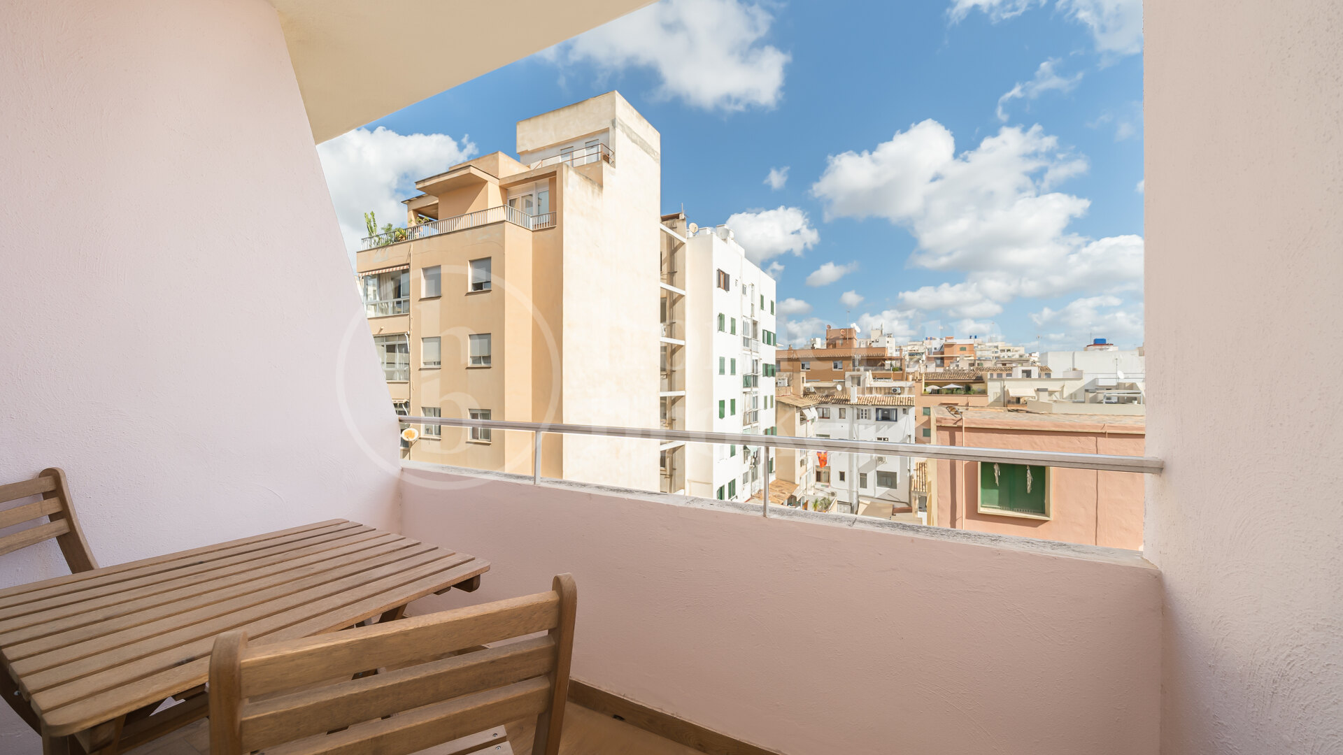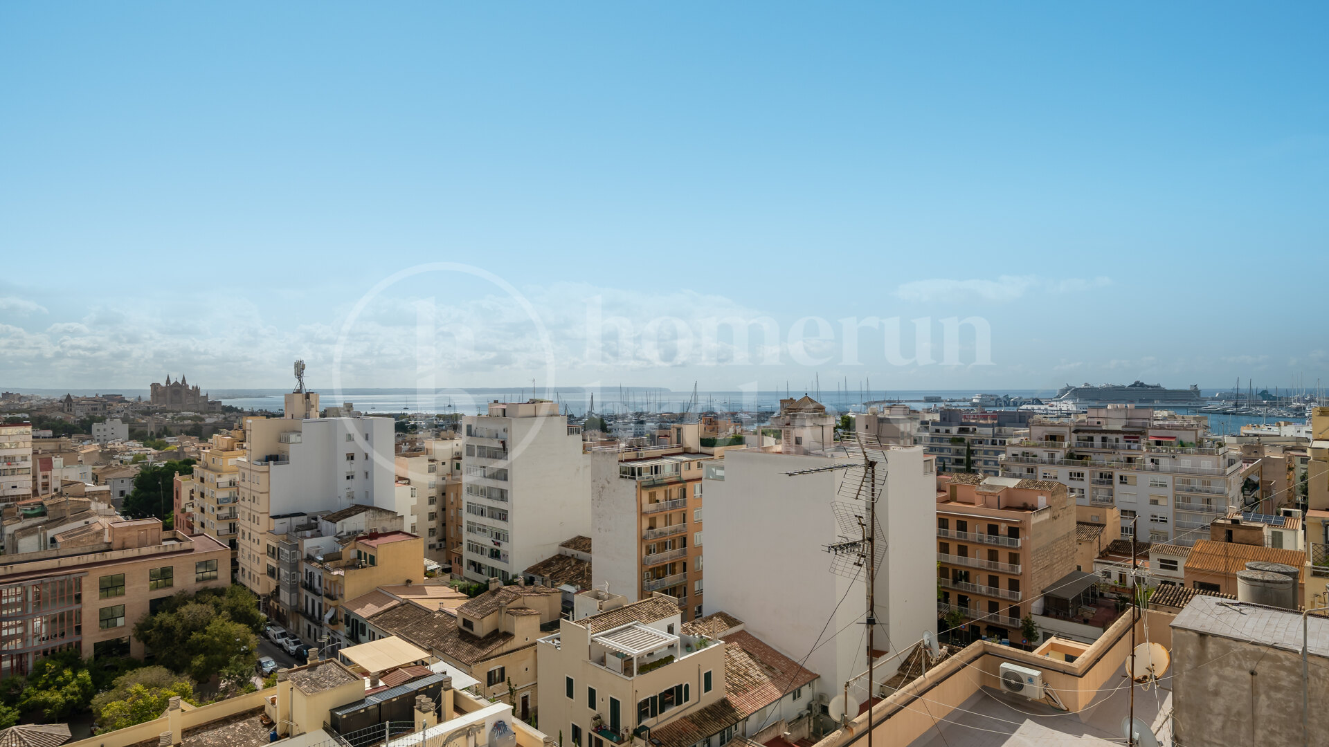 Positioned to enjoy open views over the rooftops of Palma towards the distant cathedral, the city and the sea, the apartment offers a quiet perspective while remaining immersed in urban energy. The northeast orientation ensures bright mornings and soft afternoon light, creating a comfortable indoor climate throughout the day.