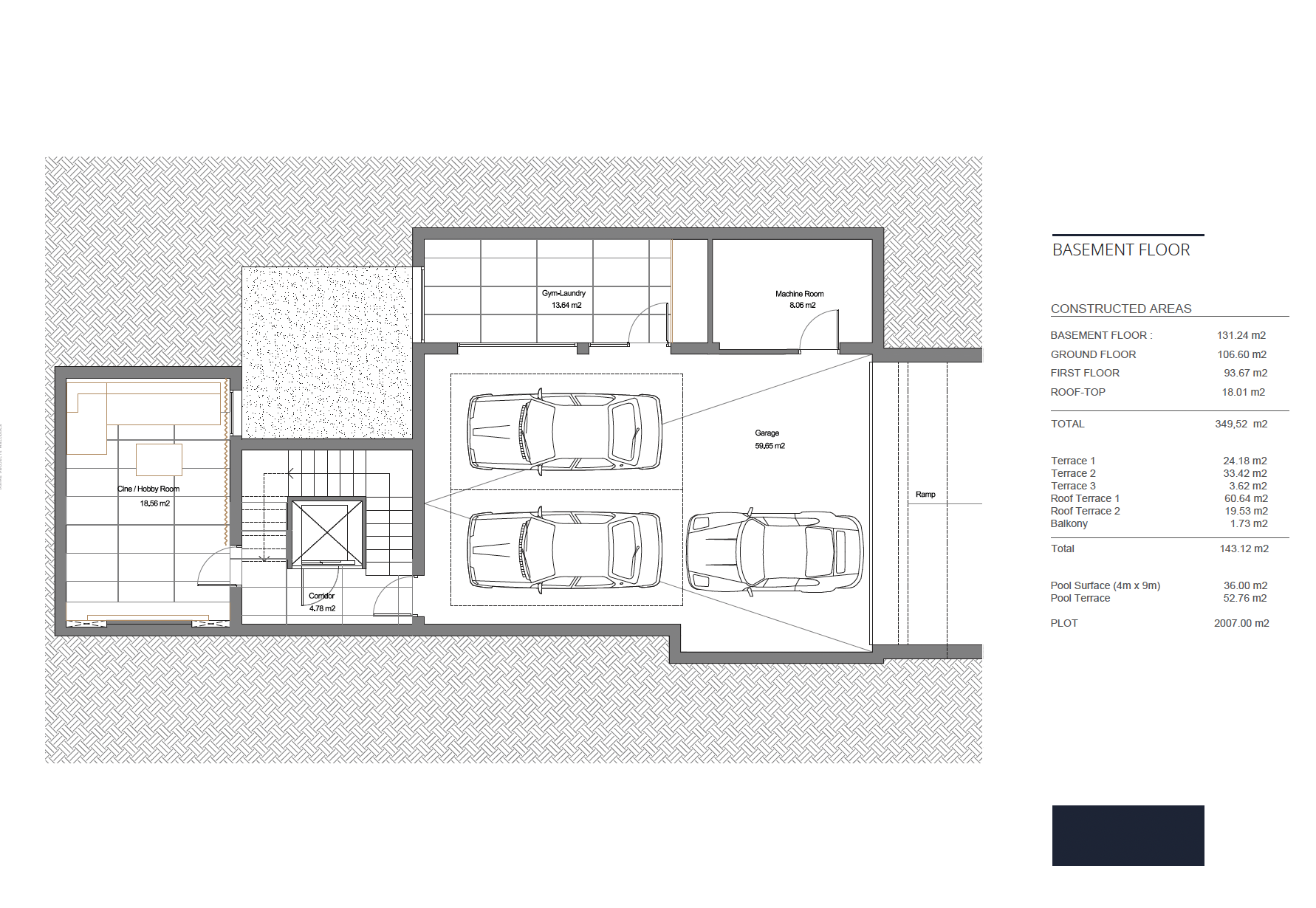 Entertainment and leisure are seamlessly woven into the property’s design. The villa includes a dedicated barbeque area for gatherings, a wine cellar for connoisseurs, and a cinema room for private screenings. A well-equipped gym with sauna ensures that wellness is always within reach. For practicality, the basement houses ample storage space, a laundry room, and a garage that accommodates three vehicles comfortably.