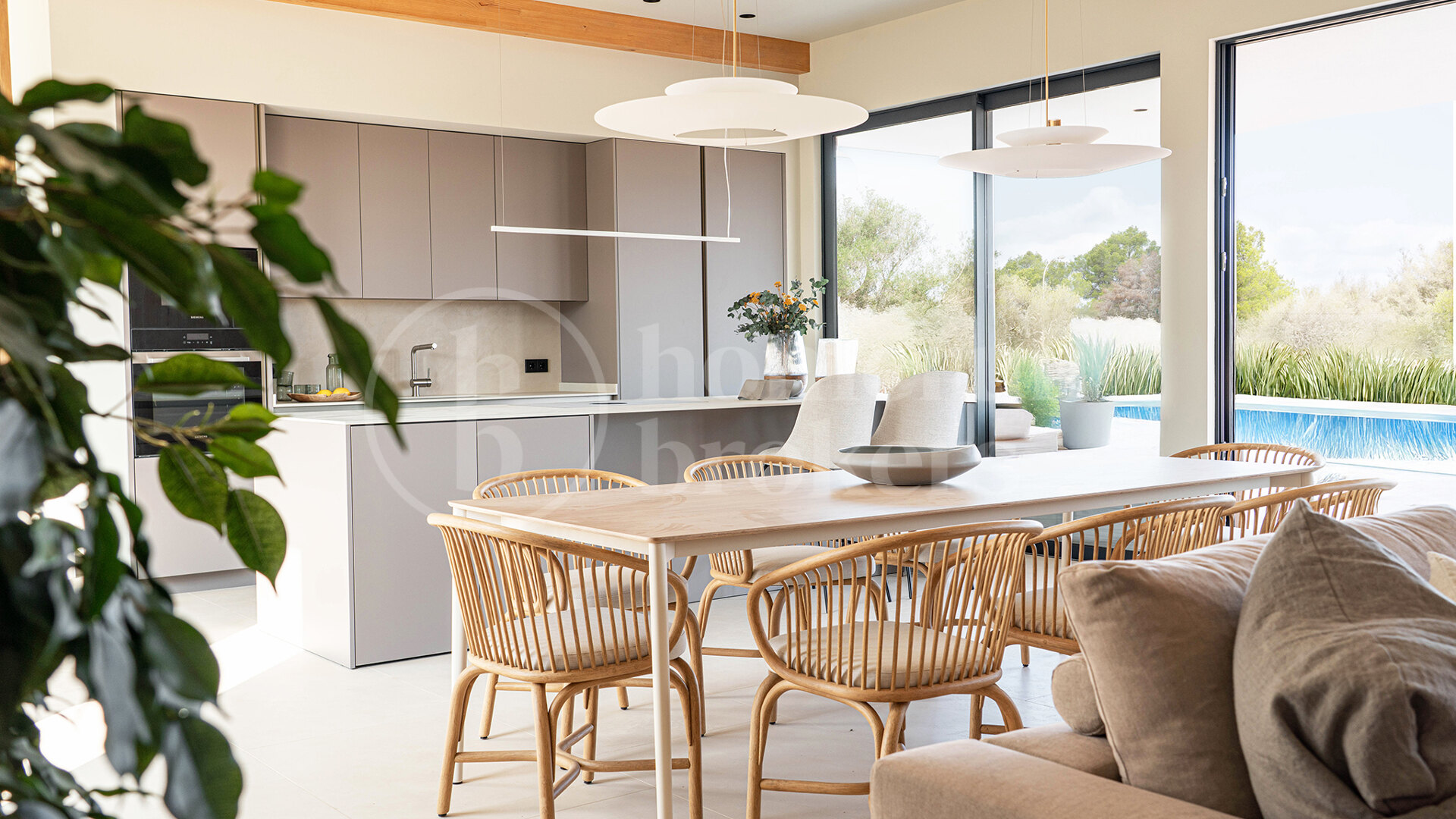Built under the direction of a renowned architect and executed by a respected construction firm, the property is distinguished by its exceptional quality and resilience. With a southwest orientation, natural light floods the interiors throughout the day, accentuating luxurious finishes such as natural wood details, stone countertops, and premium textiles. Spread over three floors and offering 350 m² of carefully designed interiors, Villa Sinigual is as functional as it is striking, created to cater to modern lifestyles while retaining the charm of its Mediterranean surroundings.